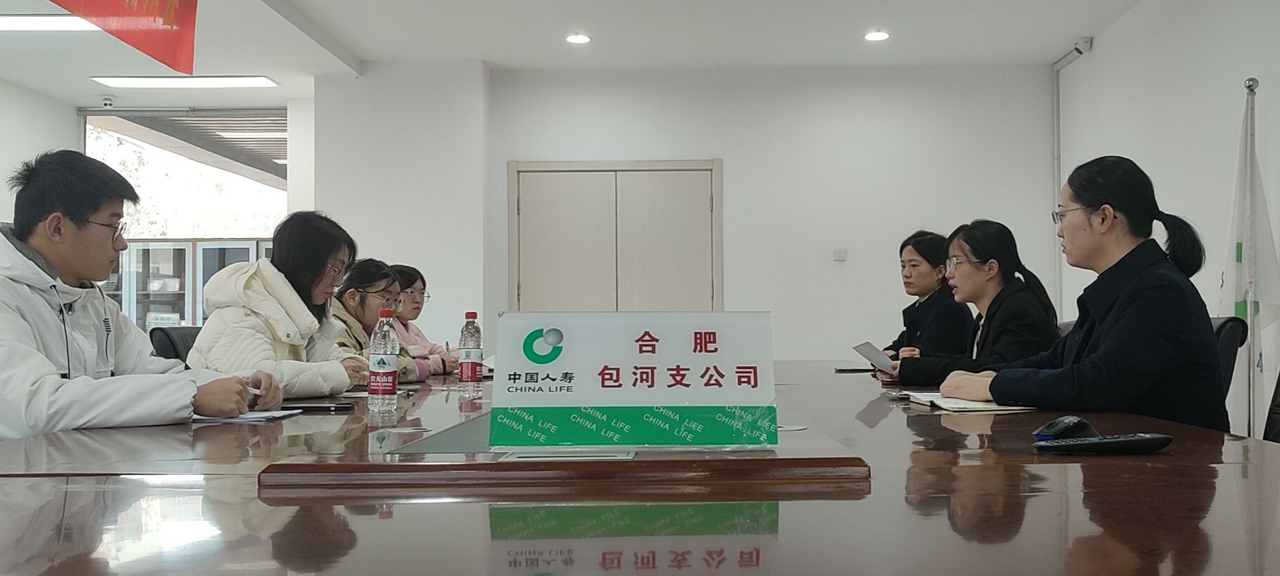 随后,团队前往中国人寿保险股份有限公司包河支公司进行调研。团队成员们与公司相关负责人进行了交流。该公司团委书记项翀向团队介绍了中国人寿保险集团公司的整体架构,包括不同地区中国人寿的发展情况和公司各方面产业情况,并带领团队成员进行了问卷调查,以进一步了解员工和客户对公司的评价和建议。
