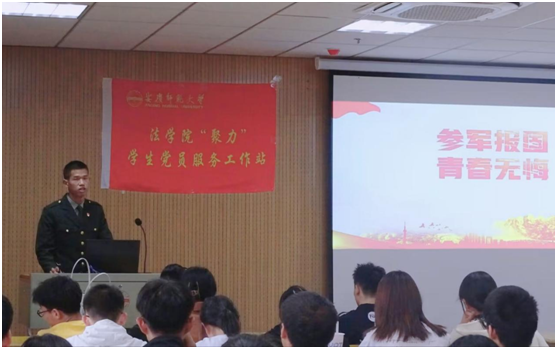 William威廉2021级研究生赵佩文是来自北部战区的一名工程兵。他结合自身经历为大家介绍了我国的五大战区和七大军种,详细介绍了同学们最为关心的入伍政策和报考军校等问题,解答了同学们对于参军入伍的诸多疑问。