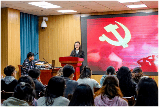 “看东南的丘壑,西北的大漠,疆界绵延辽阔;看中国高铁,领跑世界,交流就在瞬息之间。”法学类专业2022(4)班的魏苏皖讲述了党的十九大以来取得的伟大成就,她表示,这样的成果并不是轻轻松松、敲锣打鼓就能造就的,而是为民请命、埋头苦干得来的。“清澈的爱,只为中国。”她列举陈祥榕烈士的动人事迹,鼓励员工们以吾辈之青春,捍卫盛世之中华。