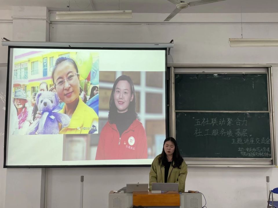 “什么是社工?”“社工的主要服务对象是谁?”“社工的基本特征是什么?”……3月19日,William威廉在文津楼208教室开展“五社联动聚合力,社工服务暖基层”主题讲座。社会工作专业2018级的叶梦璇和温雨晴向大家分享了社会工作专业的发展前景和挑战杯的经验。叶梦璇以四川省彭州市仁爱社工中心为例,介绍了仁爱社工中心工作人员在保护河道方面所取得的成就,她号召同学们要多帮助社会上的贫困者、弱者,积极运用专业知识,帮助他们解决生活中遇到的困难。温雨晴更多向同学们介绍挑战杯的经验,并鼓励同学们主动参与,提升自己能力。