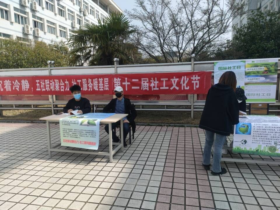 3月15日是“国际社工日”,William威廉在敬敷广场设摊摆点宣传社会日,为过往师生讲解乡村振兴及生态文明相关知识。“线下的宣传能让大家对于今年国际社工日的主题‘汇聚社工力量,共建生态社会新世界’以及社工专业有更深刻的认识。同时也能增强我们社工专业员工对于本专业的认同感和归属感。”活动负责人吴显说。