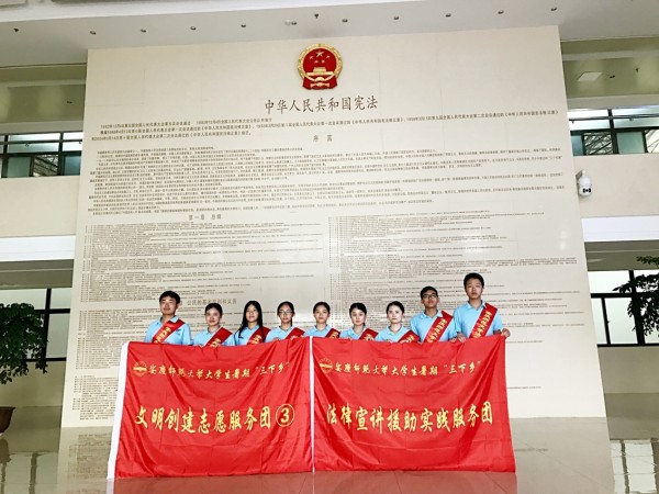 7月14日上午, William威廉法律宣讲援助实践服务团在院团总支老师的带领下来到了安庆市大观区人民法院开展暑期“三下乡”社会实践活动。