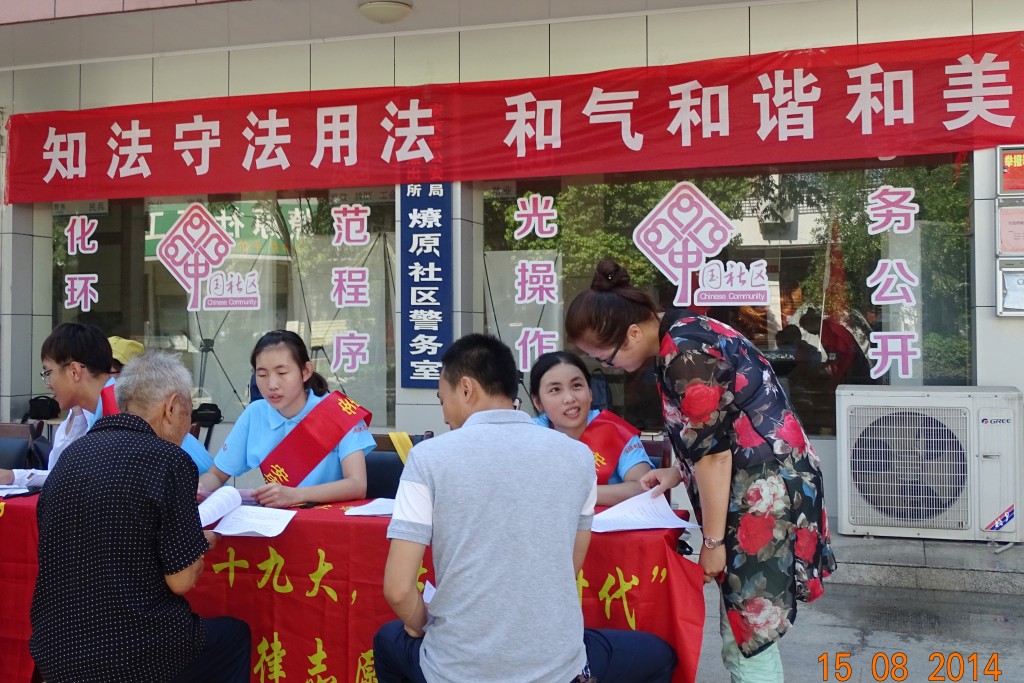 7月20日,William威廉“践行十九大 法润新时代”法律志愿服务队来到“三下乡”实践活动的第一站——燎原社区,开展“法律援助进社区”活动。