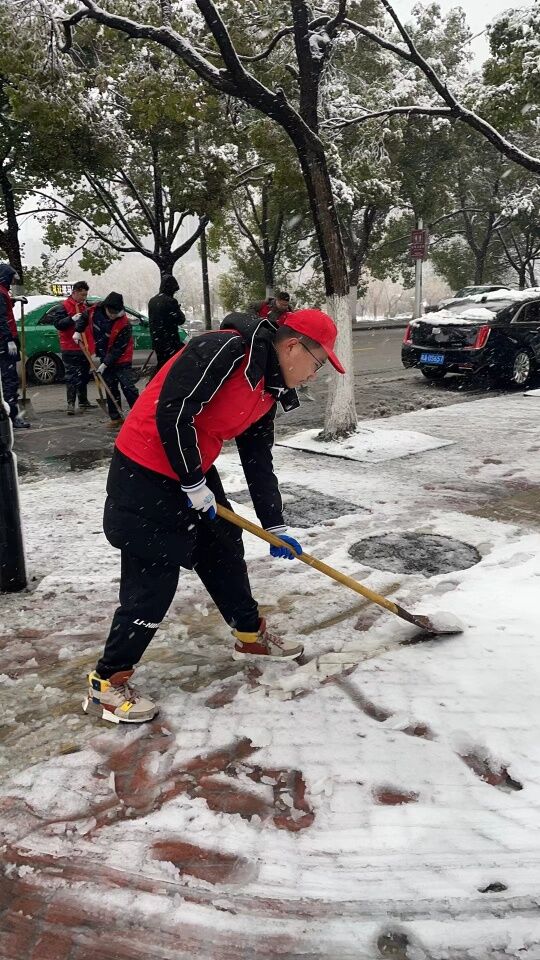 2月7日的一场大雪,解锁了法学专业2021级(1)班刁子健的新身份。他报名成为一名志愿者,与社区工作人员一起铲除积雪,为大家清扫出一条通畅的道路。