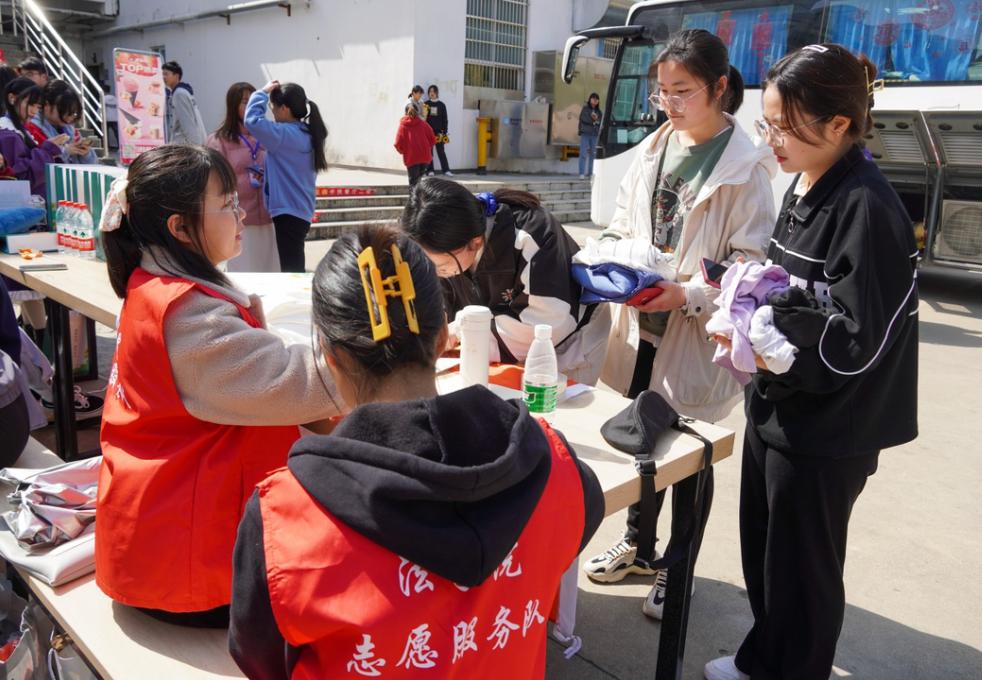 “从早上8点到傍晚结束,一直都有人来捐衣服,看着越堆越高越装越满的衣服,真的好开心,大家都有通过自己的方式默默的做贡献,希望有越来越多的人加入我们。”活动负责人社工专业2020级王紫阳介绍,衣物最终会捐赠给安庆市爱心救助站,救助站会将衣物送给更多有需要的人。