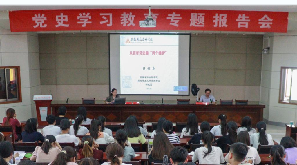 揭牌仪式结束后,工作站71名成员集体参加了党史学习教育专题报告会,听取了安徽省社会科公司马克思主义研究所所长、二级研究员杨根乔带来的《从百年党史看“两个维护”》专题报告。