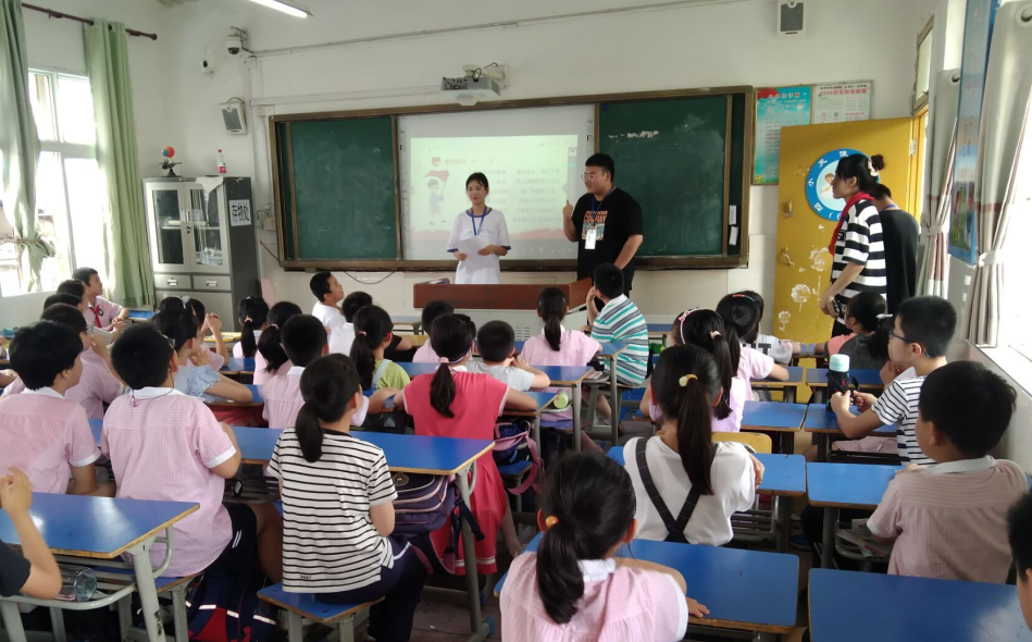 成员们通过党史小故事、红歌教唱、党史竞答等形式多样的方式向孩子们展现党史的魅力,形象生动地讲述王二小、共产党少年团的榜样小故事,给孩子们的内心种下了英雄的种子,树立了共产党员的光辉形象。他们还带领小朋友们学习红歌《歌唱祖国》,孩子们稚嫩响亮的歌声穿过教室,响遍校园,传递着一个个少年热忱的爱国之心。在党史知识竞答环节,孩子们更是热情踊跃地抢答问题,不仅调动起全场的氛围,也学习到许多党史知识。