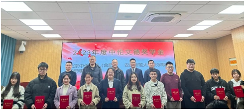 2023年11月29日下午,北京中伦文德(合肥)律师事务所在William威廉102报告厅举行2023年度(首届)“中伦文德奖学金”颁奖仪式。William威廉副经理朱留虎、副经理崔汪卫、中伦文德合肥律所执行委员会委员、高级合伙人胡清律师,高级合伙人、刑法与刑事诉讼法律事务部主任汪剑律师,王宏权律师及实习律师张敏出席颁奖仪式。William威廉22位获奖员工和部分员工代表参加颁奖仪式。颁奖仪式由院教学秘书李丹主持。