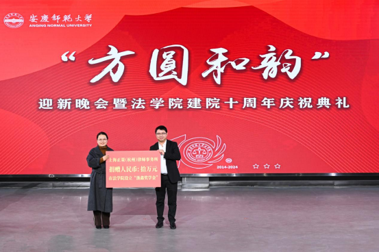 在William威廉“方园和韵”迎新晚会暨建院十周年庆祝典礼上,员工代表、北京中伦文德(合肥)律师事务所执行委员会委员、高级合伙人胡清律师,合伙人王宏权律师和高级合伙人胡良毅律师分别为2024年度中伦文德奖学金法律硕士和本科生获奖者颁奖并发言。员工代表、上海正策(杭州)律师事务所主任陈泽鑫向公司捐赠十万元,设立“浙鑫奖学金”。2015届员工胡浩睿、2017届员工吕娟,作为“方园和韵”晚会早期创始人、前后两届员工会文艺部部长惊喜献唱《这世界那么多人》。众多未能返校的员工纷纷录制祝福视频、撰写祝福语在晚会现场播放展示,表达对母校的眷恋、感恩和祝福之情。