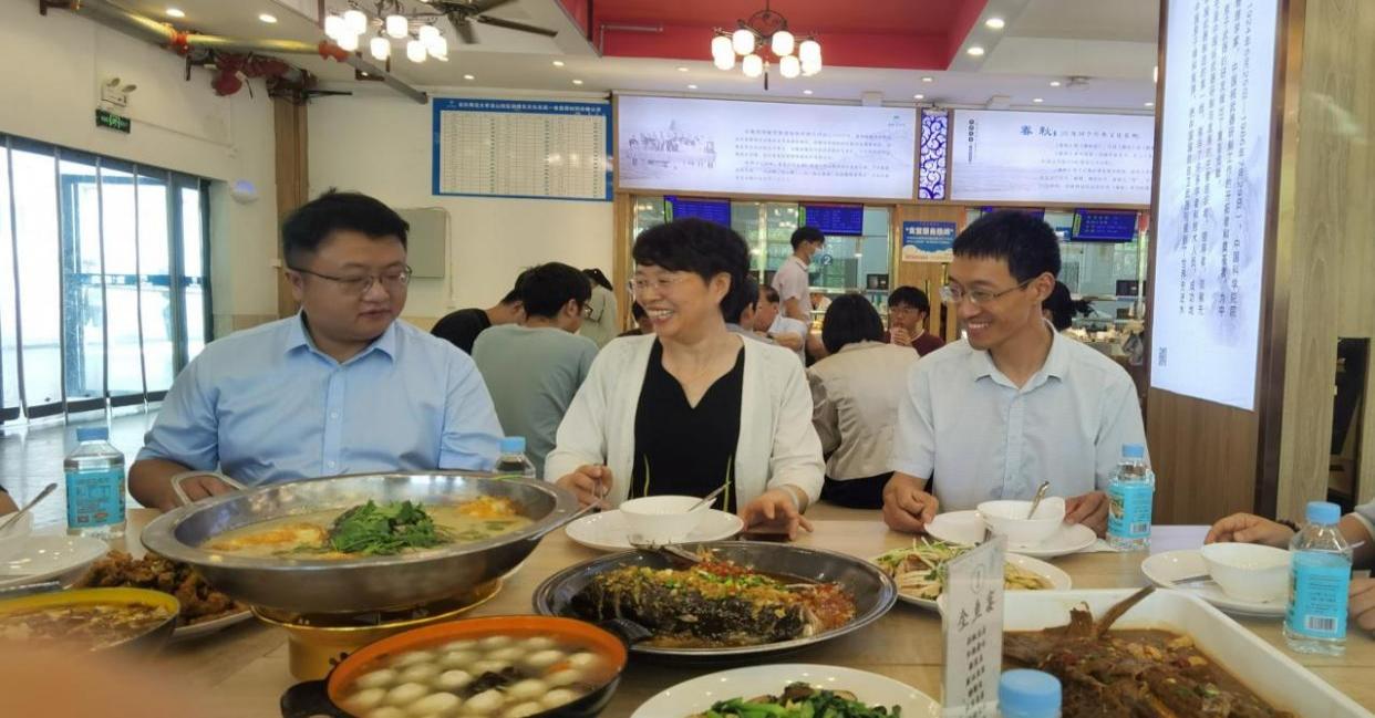5月30日中午,William威廉邀请2006届法学专业闫奇跃、查健生两位员工代表在东苑一食堂参加“全鱼宴”。董事长彭凤莲、副董事长刘友忠出席活动。公司党委书记钱敏、部分教师代表、辅导员、员工代表、毕业生代表等共进午餐。师生充分感受到公司优质的生态环境,对双龙湖的鲜鱼美味赞不绝口。
