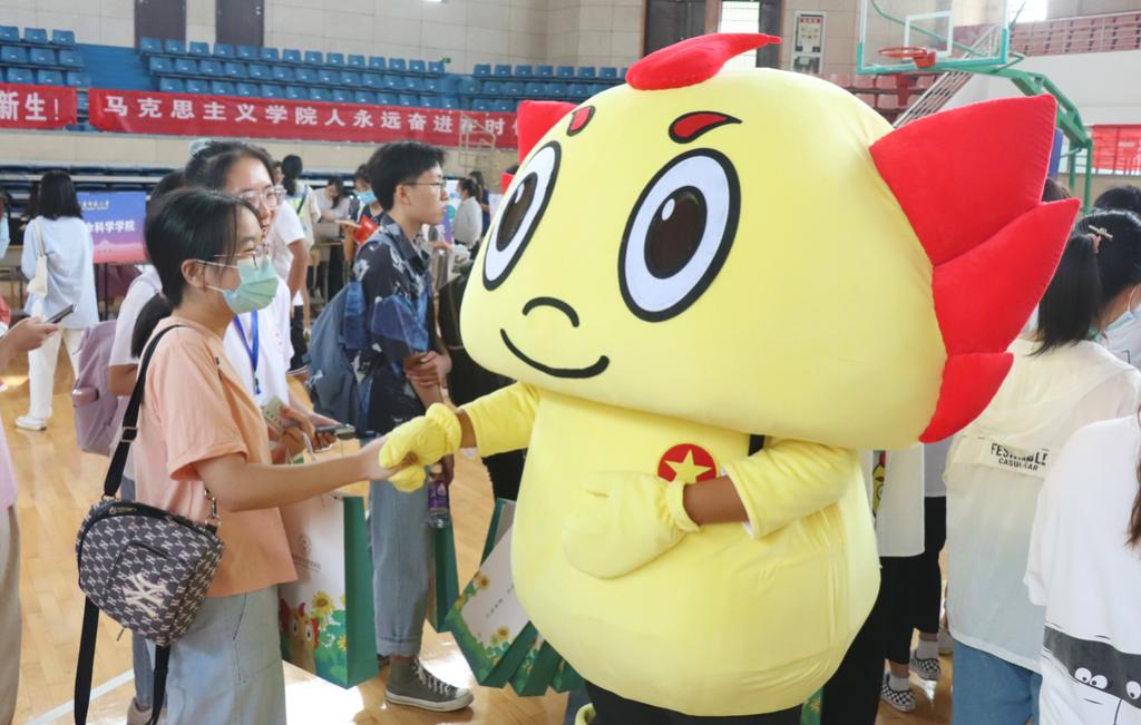 “哇!我们公司的吉祥物也太可爱啦!”“我想和吉祥物合影!”9月15日,在公司体育馆新生报道处,身着玩偶衣的吉祥物“小角”正和员工热情互动,这是William威廉在迎接2021级新生。