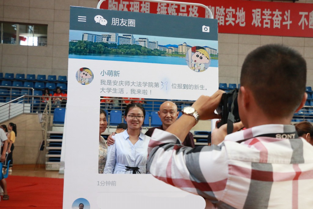 “我是安庆师大William威廉第39位报道的新生。老员工活,我来啦!”笑脸伴随着合影板上的文字定格,这张照片将在四年后重新回到新生的手中。“我们想,对于老员工来说,开学第一天,一定是让他们非常难忘的一天,于是我们就想出了这样的方法,想留下他们刚进入大学时的那份心情。同时,等到其毕业时深切感受大学四年的成长历程。”负责给新生拍照的迎新志愿者董远东说。(文/员工记者 邱焱平 图/董远东)