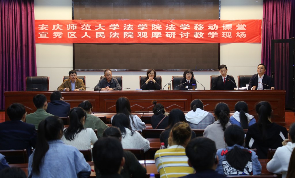 在移动中,有序开展。上午9时30分,法庭庭审在宜秀区人民法院大法庭正式开始,整个庭审活动持续四个半小时。在观摩庭审环节,参加移动课堂的全体同学严格遵守法庭审判纪律,仔细聆听,细心领会。观摩中,对庭审活动涉及的案件性质和事实认定进行学习、鉴别与研判,对法律职业人在庭审中所运用的思维方法、适用法律的技能、诉讼技巧、展现的法律人综合素质等进行观察、思考和学习。在审判结束后,下午15时20分,互动研讨教学在宜秀区人民法院三楼会议室开始,历时一个半小时。宜秀区人民法院刑事审判庭何燕庭长、李恒圆法官、宜秀区人民检察院公诉科鲍卫萍科长和安徽益上律师事务所黄益主任担任法律实务教师,William威廉部分教师和全体员工参加互动研讨教学。互动研讨主要从三个方面依次进行。首先,法律实务教师分别从审判、控诉和辩护等不同角度对案件进行分析,激发同学们对案件的多维度思考。其次,同学们提出观摩后发现的问题,由各相关法律实务教师进行一一解答。最后,William威廉朱留虎副经理对互动研讨教学进行归纳总结,并对同学们的表现进行了肯定评价。