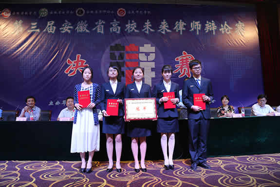 5月24日下午,由安徽省教育厅、安徽省法学会、安徽省律师协会主办,公司承办的第三届安徽省高校未来律师辩论赛在经过三天34场比赛的激烈角逐后,圆满落下帷幕。公司William威廉代表队勇夺桂冠,这是安庆师范公司辩论史上第一个省级辩论赛冠军;公司荣获优秀组织奖,2012级法学1班徐培培同学荣获“优秀辩手”称号。
