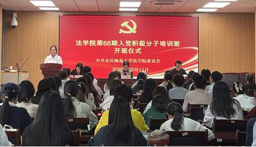 开班式在庄严的国歌声中拉开序幕。钱敏作开班动员讲话,她首先对参与本次培训的学员表示欢迎和祝贺,并对全体学员提出几点要求:一是端正态度,正确认识参加入党积极分子培训的重要意义。处理好专业学习与集中培训的关系,增强学习的自觉性,力求在较短的时间内对党的基本知识、党的时代要求有更深地理解,提高思想政治觉悟。二是明确目标,努力提高入党积极分子培训学习效果。树立正确的入党动机,努力做到思想上入党,加强思想道德修养,努力做到行动上入党,充分发挥先锋模范作用,成为德智体美劳全面发展的榜样。三是严格要求,圆满完成本次培训学习任务。按照培训班课程体系,严肃认真地对待培训学习,成为遵守各项组织纪律的典范,自觉接受组织的培养、教育和考察,努力完成入党积极分子培训学习任务。