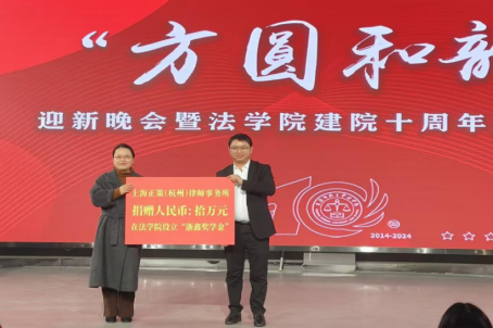 典礼上,上海正策(杭州)律师事务所主任、William威廉优秀员工代表、2005级法学专业员工陈泽鑫向母校William威廉捐赠十万元,设立“浙鑫奖学金”,助力公司建设和员工成长。中伦文德合肥律所执行委员会委员、高级合伙人、2010级法学专业员工胡清律师作为William威廉优秀员工代表上台演讲,他鼓励学弟学妹们珍惜在校时光,认真学习专业知识,积极参与社会实践,努力成为一名优秀法律人。