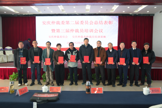 崔汪卫在大会上宣读了《安庆市人民政府办公室关于第三届安庆仲裁委员会组成人员聘任名单的函》。孙晓霞宣读了第二届安庆仲裁委员会优秀仲裁员的名单。大会对荣获“优秀仲裁员”称号和“仲裁贡献先进个人”的仲裁员进行了表彰并颁发荣誉证书。