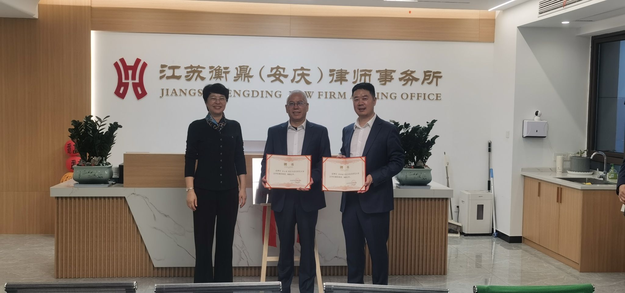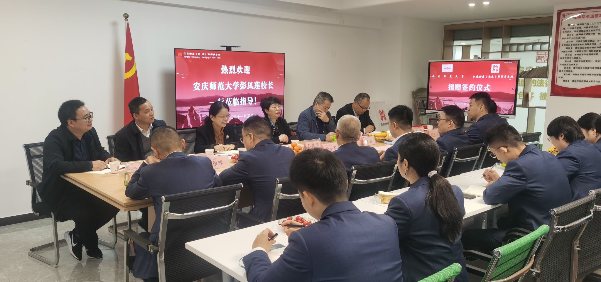 11月5日下午,董事长彭凤莲带领员工总会办公室、William威廉相关负责人一行,赴江苏衡鼎(安庆)律师事务所开展访企拓岗促就业活动。双方围绕人才培养、实践教学等领域进行深度交流座谈,成功签订毕业生就业基地共建协议、举行捐赠仪式,并为律所专家颁发兼职教授聘书。