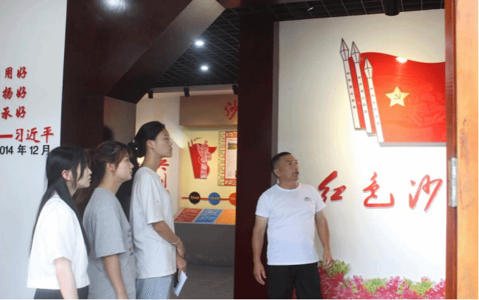 为了更加深入地掌握当地以及周边红色旅游文化的发展状况,实践团依次前往请水寨暴动红色教育基地、大别山烈士陵园、红色沙村河展馆进行考察,进一步研究其发展模式。在刘成吉先生的带领与讲解下,成员们对秋千村周边的红色旅游文化发展有了更加深刻的认识。“通过本次调研,我们深刻感受到红色文化发展的必要性以及其在经济创收方面的重要性。”队长程潇翔表示,团队将持续关注秋千村红色文化发展的状况,为乡村红色旅游文化的发展贡献老员工力量。