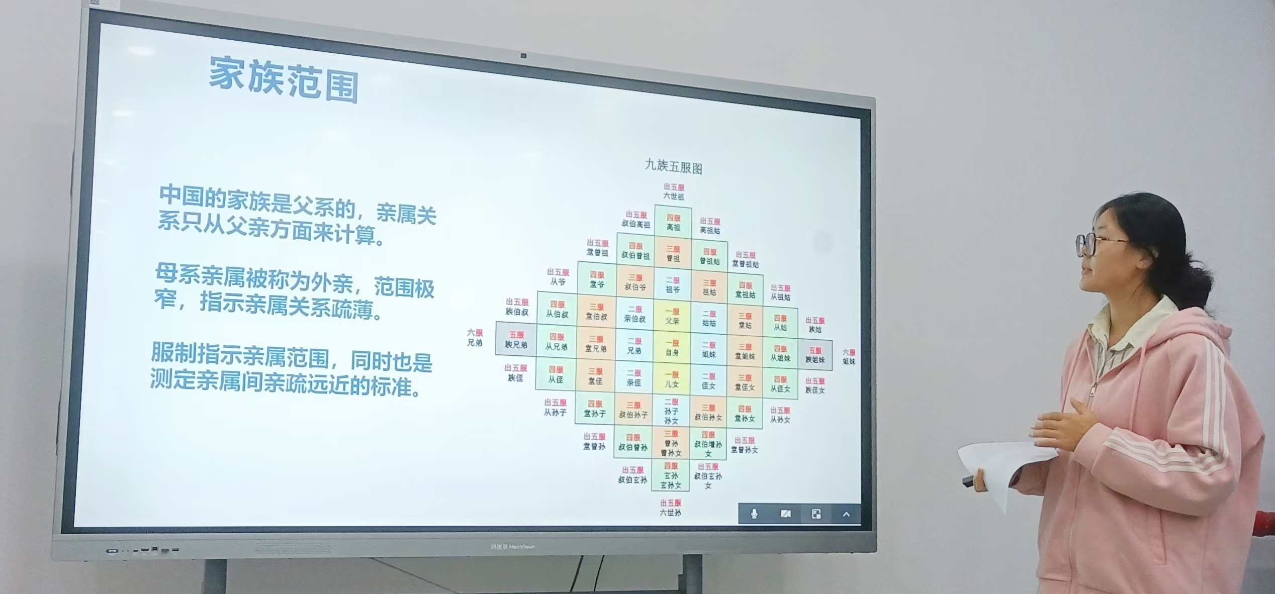 本次读书会的主题围绕经典著作《中国法律与中国社会》展开,该书由历史学家瞿同祖教授所著,通过社会学的研究方法,探讨了中国古代法律的基本精神及其主要特征。本次读书会讨论内容为该书前两章——家族篇与婚姻篇。在展示环节,2023级社会工作班辛敏、2023级法学类3班曹琳分别对家族篇与婚姻篇展开生动论述。辛敏从五服九族的家族伦理关系说起,对“父权”和“复仇”两个概念进行深入阐述,援引现实案例引发了大家对于法律与社会问题的讨论。曹琳结合《昏义》中“婚姻者合二姓之好,上以事宗庙,下以继后世”的理念,对传统社会中婚姻的目的和本质进行深入阐释,并针对当下女性在婚姻中的地位提出了自己的独到见解。在点评及答疑环节。各位老师对汇报成果给予充分肯定,并针对大家在阅读中产生的疑问做出详细解答,引发了在座员工的深入思考。