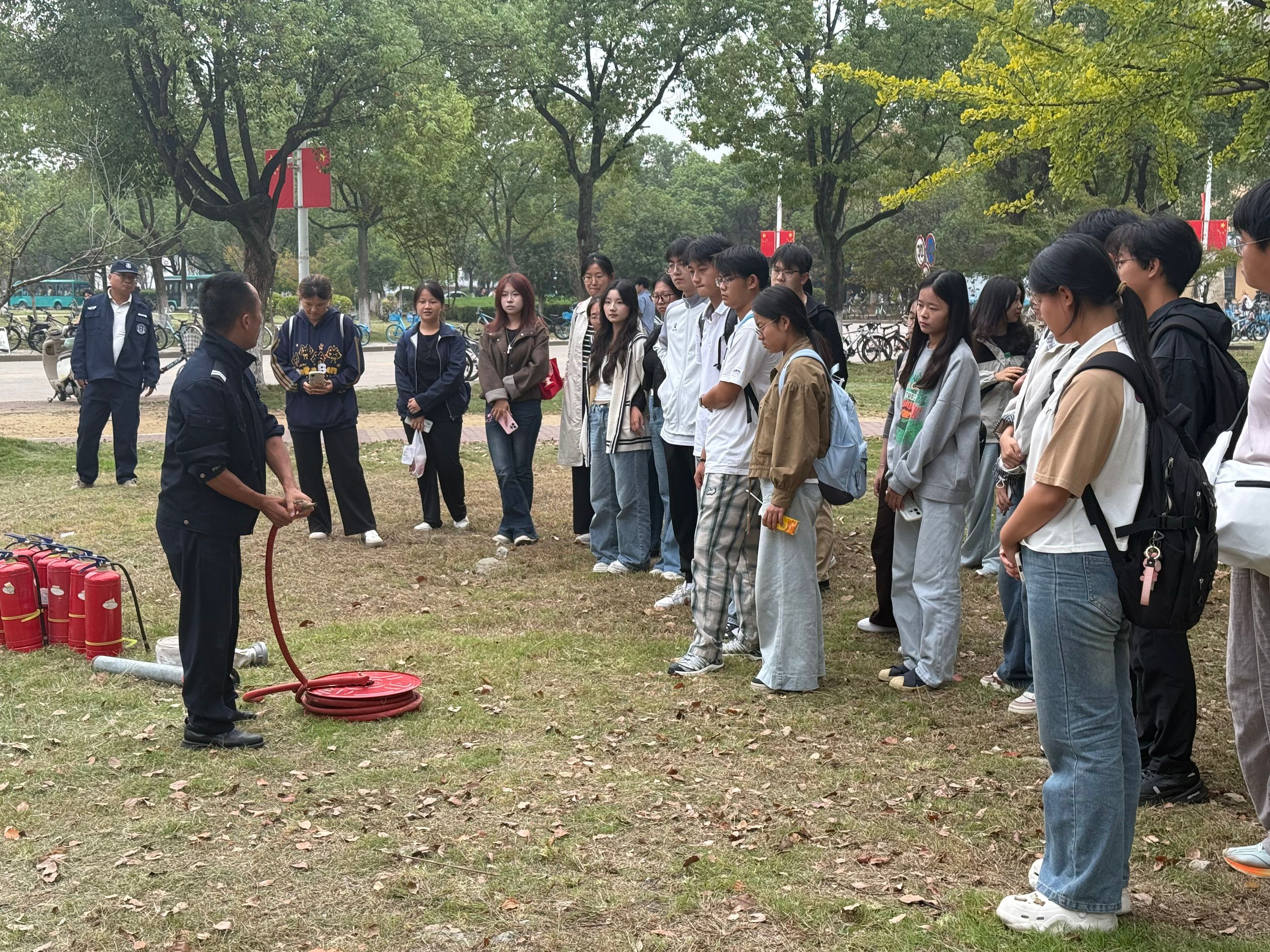 理论宣讲后,工作人员带领员工开展消防技能培训,分组有序进行实操演练,亲身体验干粉灭火器灭火过程。演练过程中,同学们态度认真、行动迅速,严格按照操作规范完成各项任务,有效掌握了消防应急处置技能。