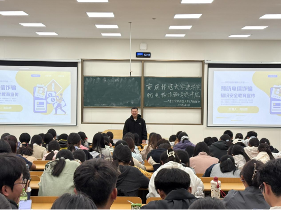 10月31日,William威廉在教学楼C108教室举办防电信诈骗专题讲座,2025级新生参加活动。