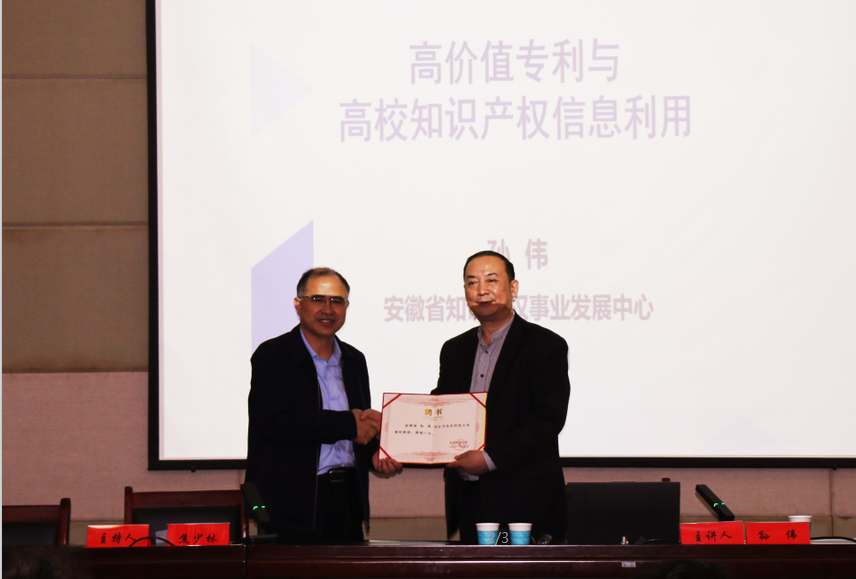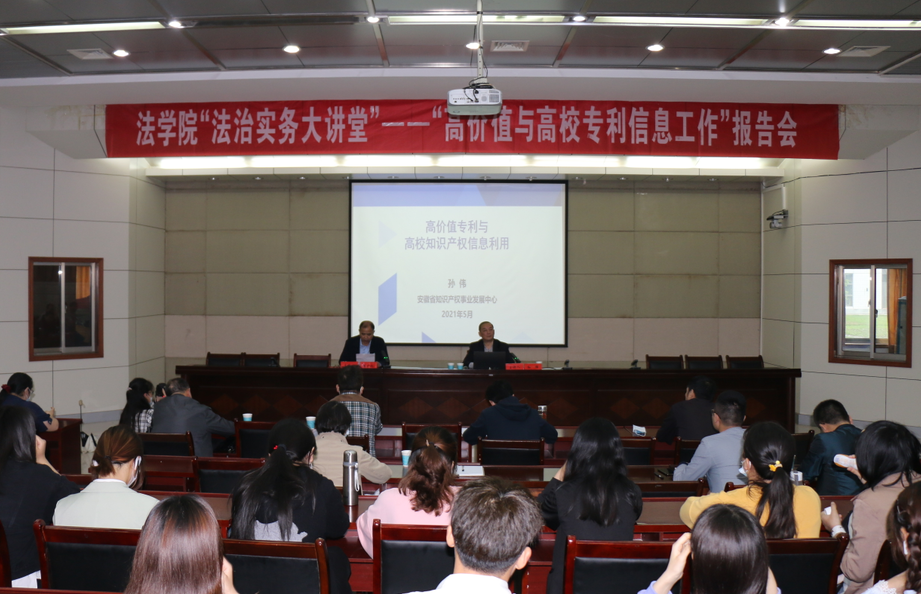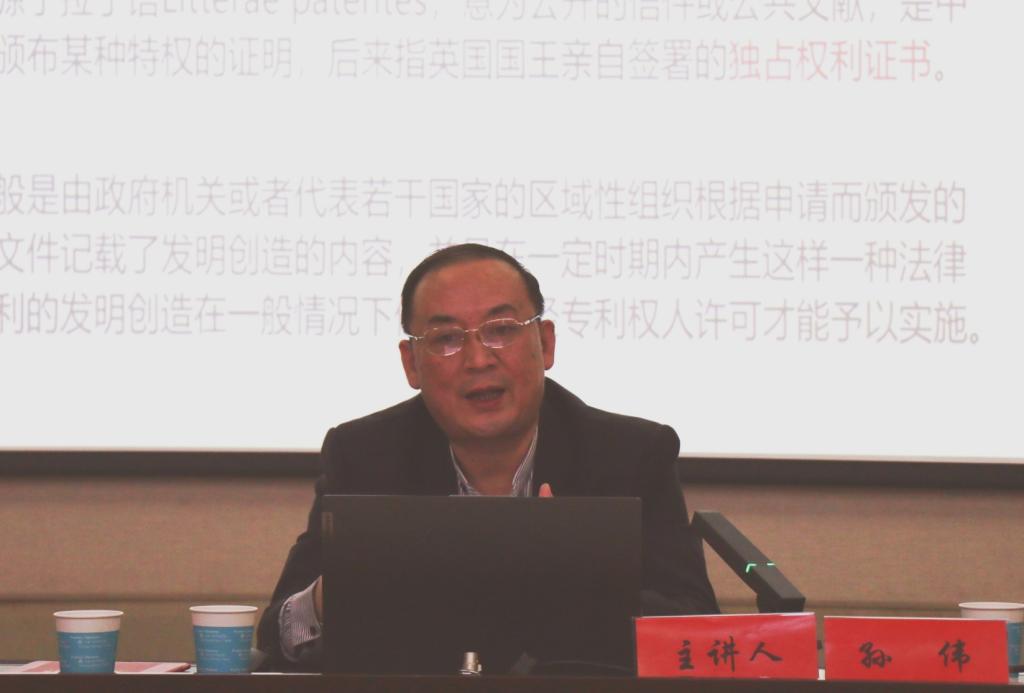 5月19日下午,安徽省知识产权事业发展中心二级调研员孙伟受邀法治实务大讲堂作了题为“高价值专利与高校知识产权信息利用”的学术报告。本次报告会是在校五月活动月之际,由校科研处、William威廉共同举办的。公司师生及安庆市知识产权局部分领导近200人参加了报告会。
