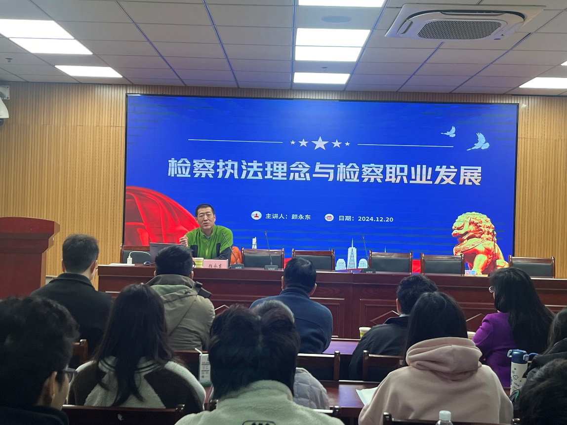 2024年12月20日下午,安庆市迎江区人民检察院检委会委员、四级高级检察官颜永东莅临William威廉法治实务大讲堂作题为“检察执法理念与职业发展”的报告。安庆市中级人民法院立案庭庭长金京、安徽国誉律师事务所主任韦国担任评议人,报告会由William威廉副经理崔汪卫主持,公司师生、律师、法官、检察官等100余人聆听报告。