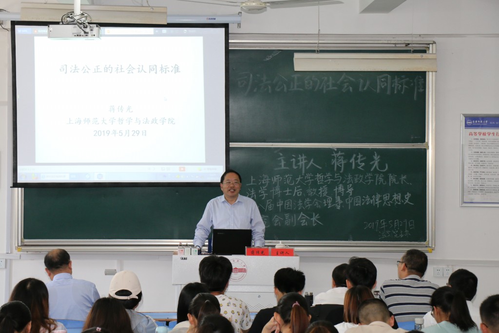 5月29日下午,在文津楼405教室,上海师范大学哲学与法政公司经理、博士生导师蒋传光教授来校作“司法公正的社会认同标准”为主题的学术报告。经理焦少林教授主持此次报告,William威廉部分教师和2017级、2018级共130余人聆听了报告。