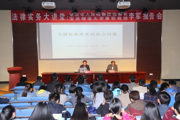 4月27日,安庆市人民检察院检察长、公司兼职教授李军应邀来公司法律实务大讲堂做了题为“当前检察改革的热点问题”的报告,该报告也是William威廉官网发展战略研讨会系列报告之一。公司党政领导和法学专业师生200余人参加了报告会,报告会由William威廉经理焦少林教授主持。会后,董事长闵永新教授与李军检察长进行了座谈,闵董事长介绍了公司发展情况,对李军检察长和安庆市人民检察经理期以来对公司、特别是公司法学学科专业建设给予的关心和支持,表示感谢。